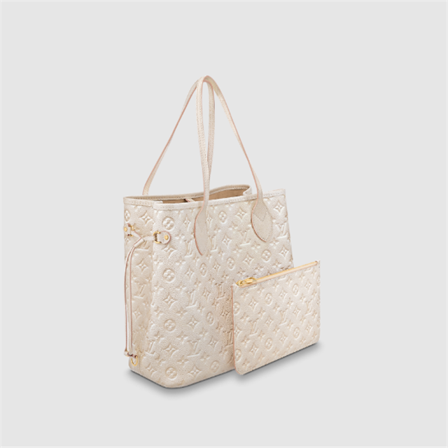 The Summer Stardust animation brings a shimmering effect to the embossed Monogram Empreinte leather of this Neverfull MM carryall. Roomy but lightweight, its side laces cinch for a sleeker allure or loosen for a more casual feel. The leather handles slip comfortably over the shoulder or arm.